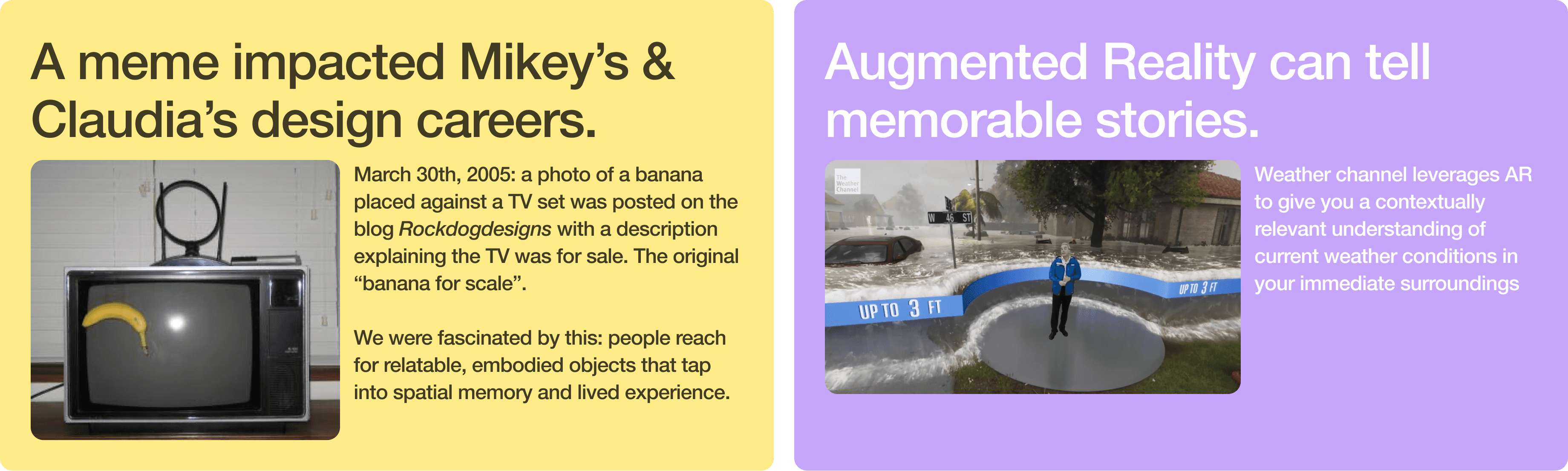 A playful AR measuring tool that explores how people instinctively describe size using familiar objects when exact units feel meaningless—"about three bicycles long" just clicks faster than "5.182 meters."