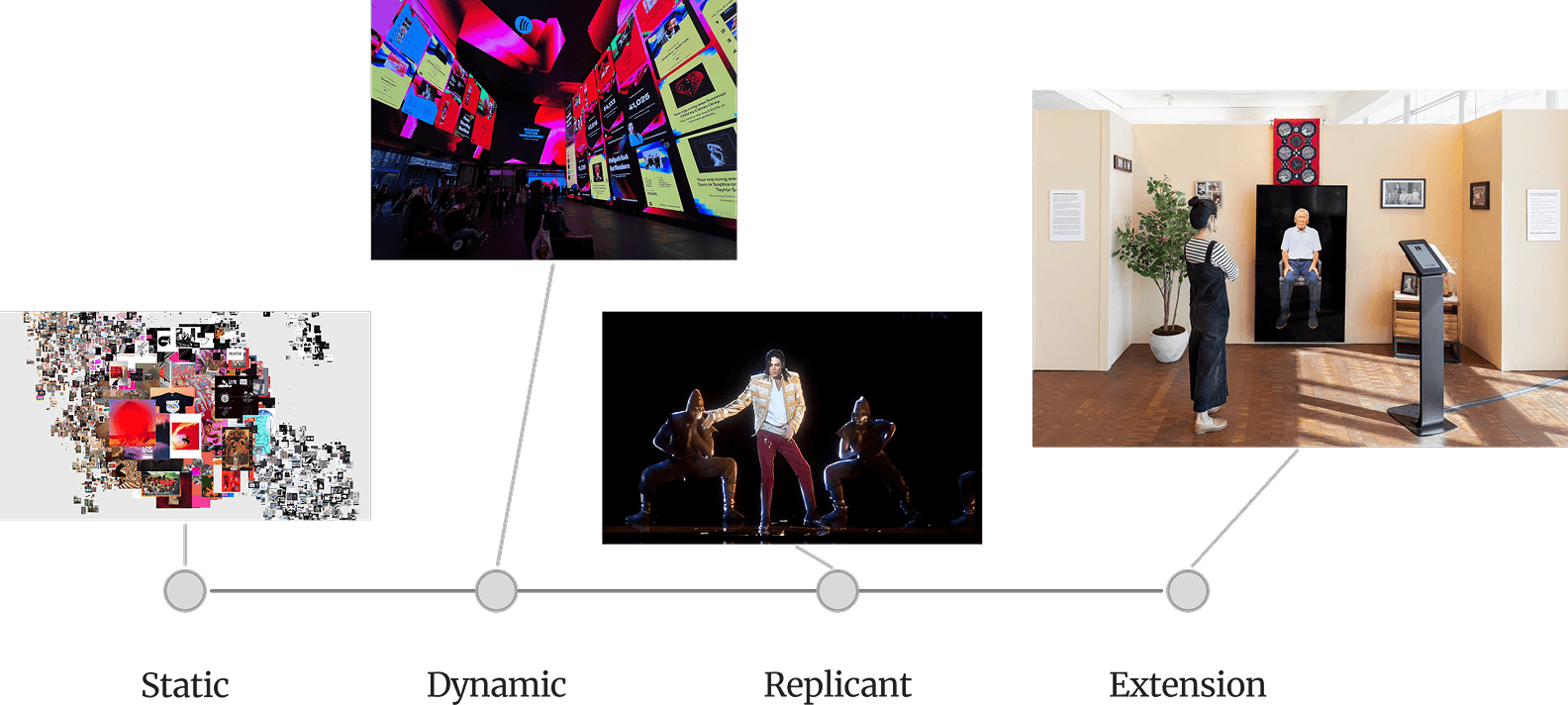 From this research, I proposed the Digital Presence Spectrum, a framework for mapping how applications relate to thanatechnology along four stages: Static, Dynamic, Replicant, and Extension. This became the project's original thesis contribution, later published on ArtCenter's MDes IxD Medium publication.